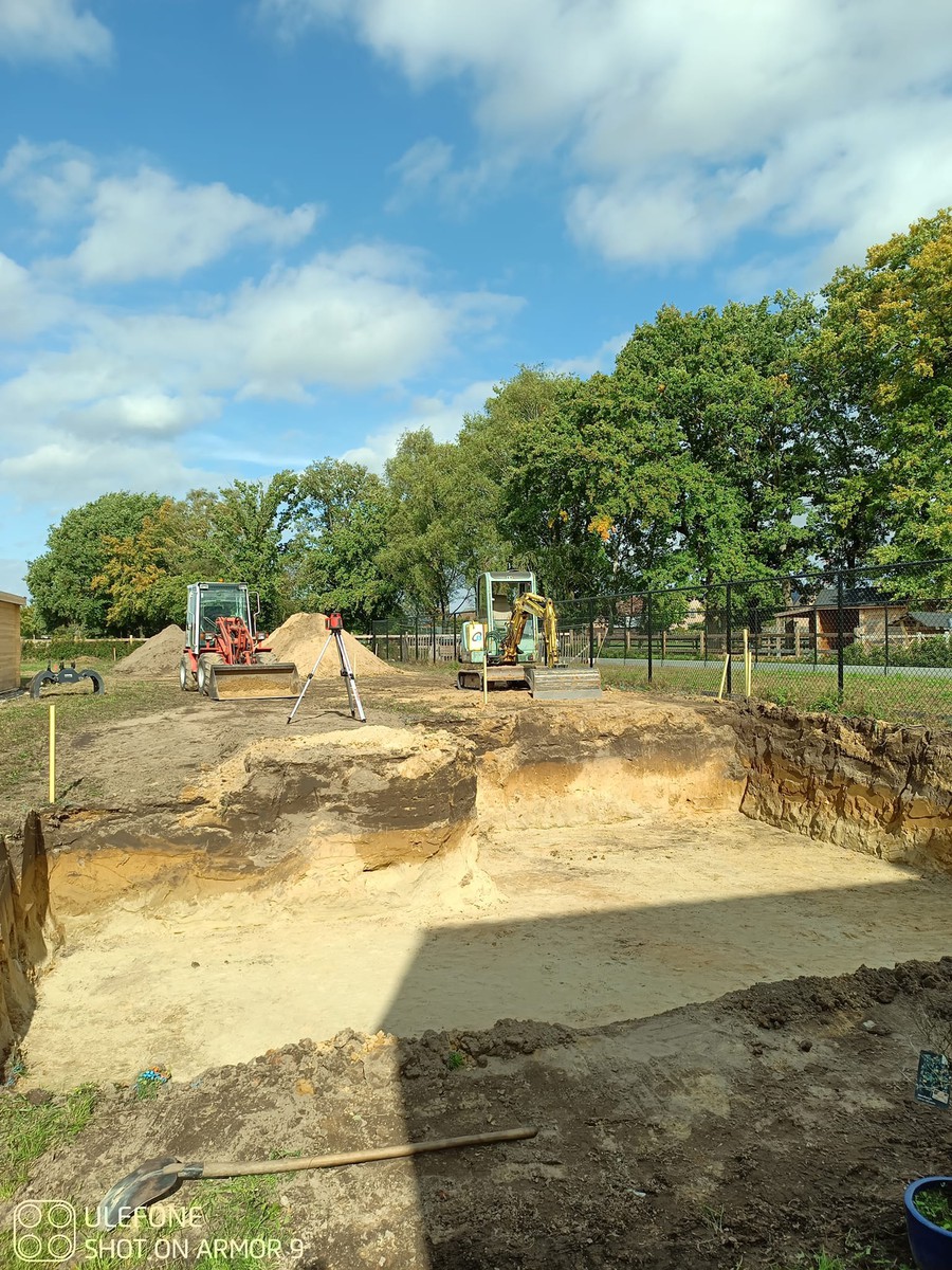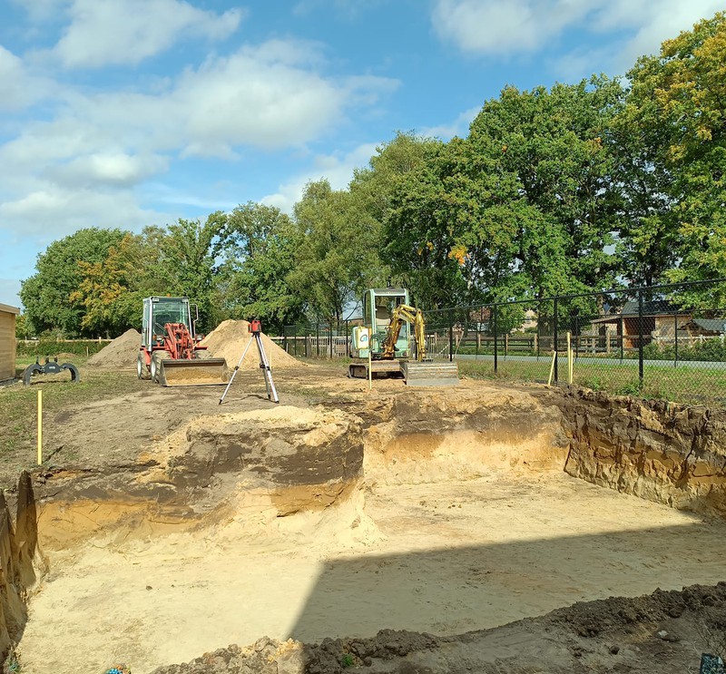 Alle voorbereidende grondwerken met eigen machines, vakkundig uitgevoerd en perfect gecoördineerd.